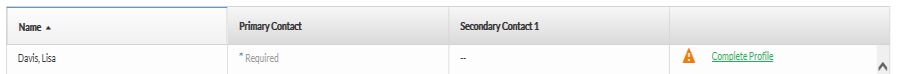 1. On the Clinicians page, in the last column, select the Complete Profile link to display the Create Clinicians page.