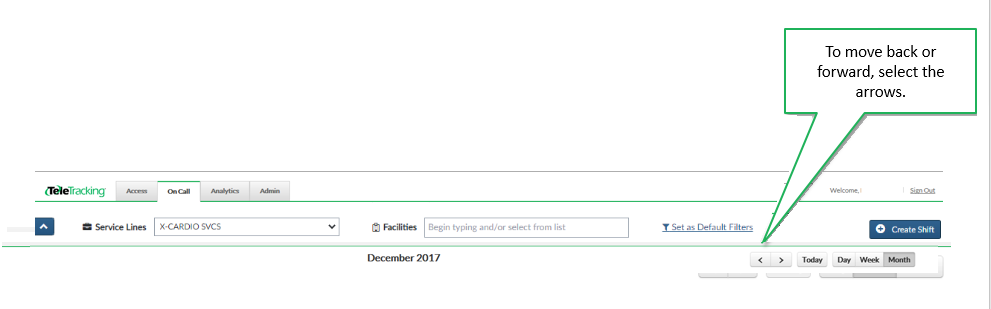 The administrator of your TeleTracking IQ® platform assigns people who are responsible for schedules to the role of Service Line Owner. If you have been assigned the Service Line Owner role, you can move shifts. A service line owner can move a shift for any service line, as long as an administrator associated the service line owner's user profile with a facility that is associated with that service line. For example, if you are a service line owner for Cardiology, you can also move shifts for other service lines, such as Obstetrics, as long as those service lines are associated with facilities that your user profile is associated with.